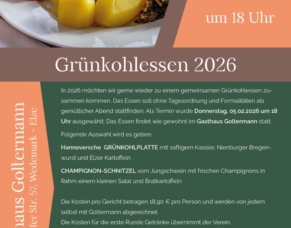 Nach den geselligen Abenden der vergangenen Jahre organisiert der Dorfbild Elze e.V. auch wieder in 2026 wieder sein traditionelles Grünkohlessen bei Goltermann. Als Termin wurde der […]